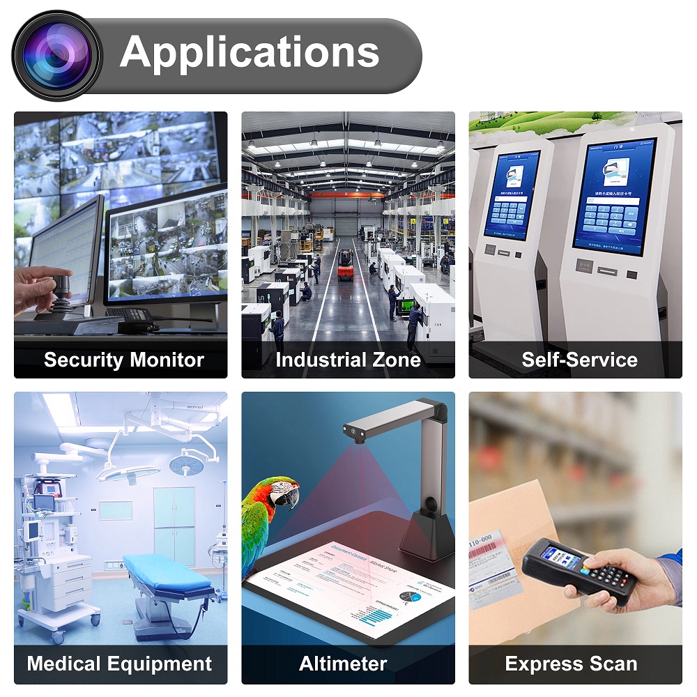 Well used for industrial camera, video conferencing, live streaming, security system, medical device, industrial inspection, scientific research and development , education and training, high resolution document scan, high-speed photographic apparatus, photo scanner... and so on.